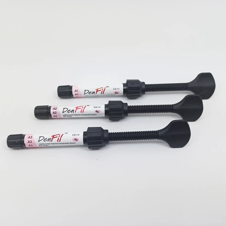 - کامپوزیت Denfil Flow در سه رنگ A1,A2,A3 تولید میشود. تنوع سایه رنگی از مزایای یک کامپوزیت به شمار میآید زیرا به دندانپزشک کمک میکند راحتتر رنگی که با دندانهای بیمار همخوانی دارد را انتخاب کند
