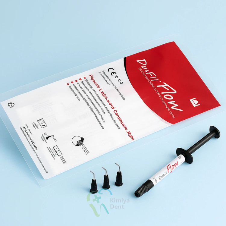 کامپوزیت Denfil Flow مناسب برای ترمیم های حفره باریک و عمیق مانند نواحی منحنی میباشد که خاصیت پخش پذیری بسیار مناسبی دارد.