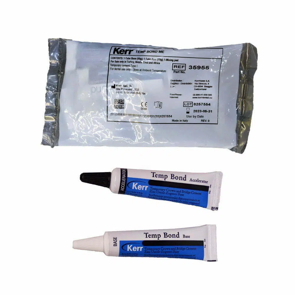 سمان موقت تمپ باند کر (Kerr Temp-Bond) از محبوبترین محصولات در گروه سمانهای موقت دندانپزشکی است که برای چسباندن موقت روکشها، بریجها و رستوریشنها طراحی شده است. این ترکیب از پایه زینک اکساید و اوژنول (ZOE) تشکیل شده و در نسخههای با اوژنول و بدون اوژنول ارائه میشود تا برای مصرف در مواردی که حساسیت به اوژنول یا ضرورت استفاده از رزین وجود دارد، قابل انتخاب باشد.